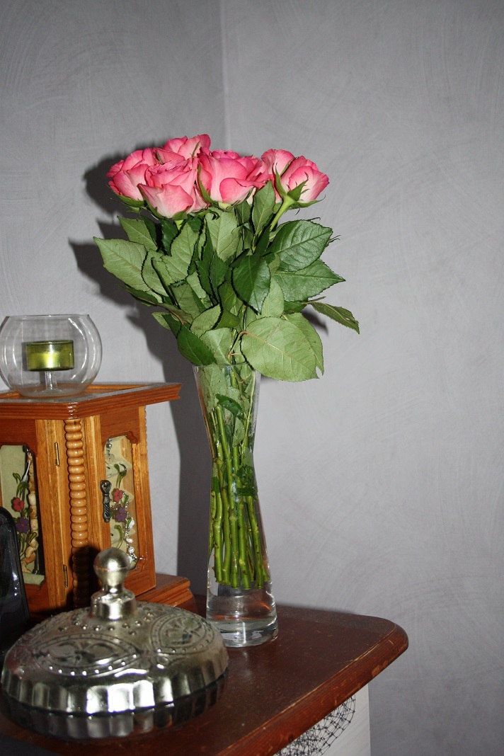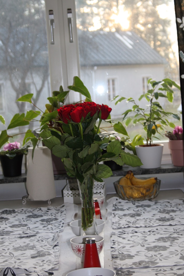 Dagen på jobbet har bestått av mycket ute tid, även om den även varit effektiv inne, men vem vill spendera tid inomhus när värmen är här? Det finns ju så mycket att njuta av utanför dörrarna. Jag har njutit och haft det riktigt bra! När jag kom hem hämtade jag William från skolan och vi tog sedan bussen ut till Björn där han bjöd på tacopaj som var SJUKTGOD! Vi gick sedan hem, med en avvikare in på Willys där jag hittade rosor (snittblommor) för 19’90 jag kunde inte låta bra att köpa mig 3 buketter hem. Jag älskar att ha rosor hemma, jag riktigt njuter av det och nu finns det en bukett i mitt sovrum, en bukett i köket och en bukett i vardagsrummet. Vardagslyx som förhöjer stämningen i hemmet.