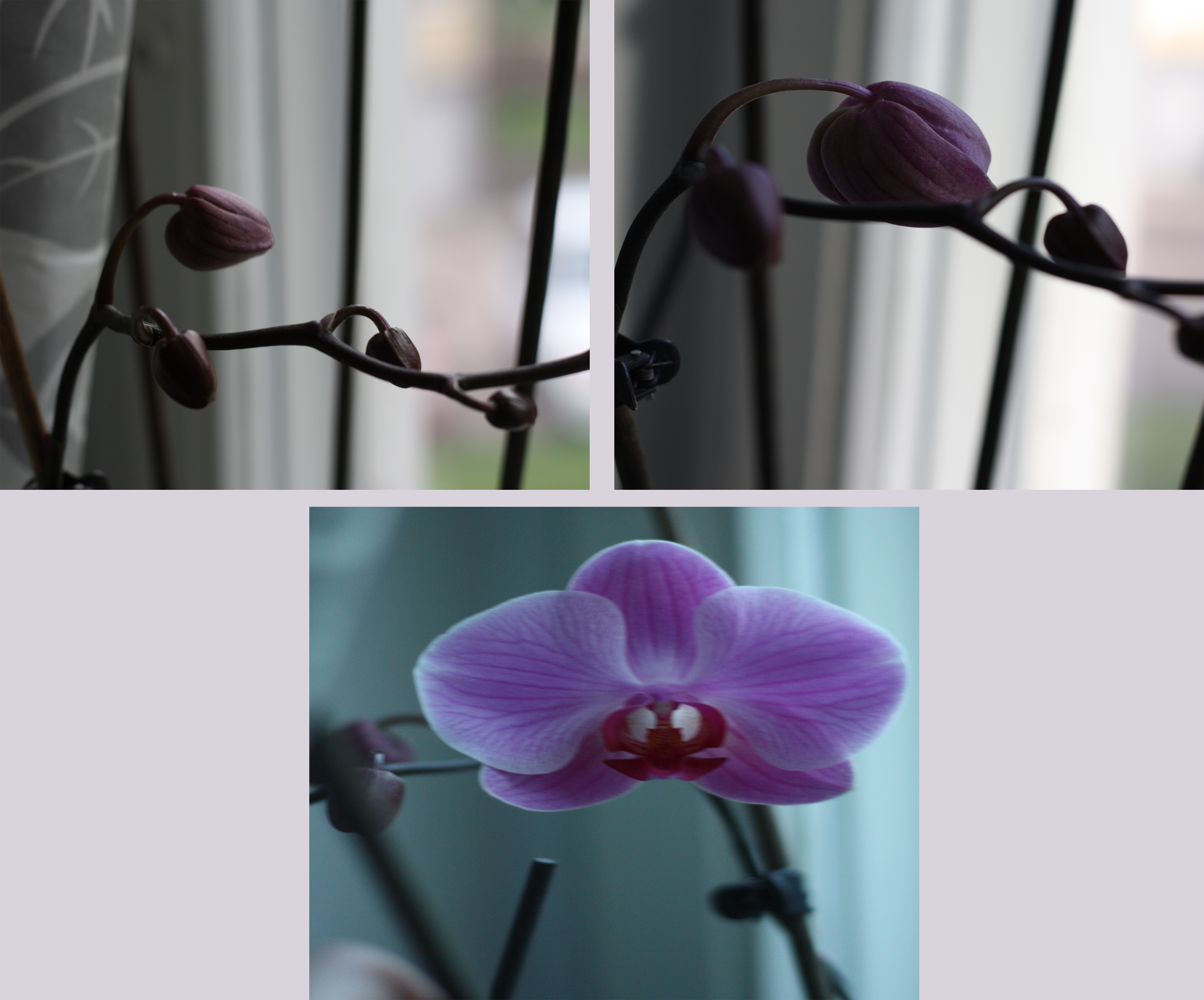 Jag har dokumenterat en av mina orkidéer som gått från knoppar till blomma under en veckas tid. Visst är den vacker?