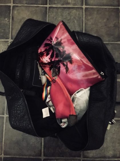 I min handväska hittar du en necessär, en snippanecessär från Apoteket som jag handlade för 20:- som gick till att förhindra könsstympning. Du hittar nycklar till jobbet, min plånbok, bärpåsar till frukt och grönt som är till för att återanvändas. Du hittar min kalender till jobbet och oftast förutom senaste veckan även kvitton.