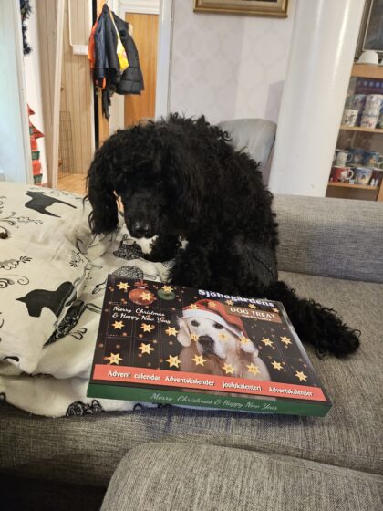 Jag fick hämta Lizzla lite tidigare än tänkt, hon var ledsen och hade ylat i kapp med en annan hund. Så jag hämtade henne så klart, hon hade inte sovit någonting förutom under operationen. Så när djursjuksköterskan la henne i min famn slocknade hon av ren utmattning. Lizzla har aldrig varit i bur innan, så det var ju inte konstigt att hon reagerade som hon gjorde tänker jag. I alla fall åkte vi hemåt så pep hon nästan hela resan. Tratten gillade hon inte alls, och var som en zombie när vi kom hem. Hon är normalt ingen hund som vill vara nära men efter operationen låg hon på mig och jag fick ha en hand på henne hela natten för att hålla henne lugn. Vi har sovit på soffan sedan operationen, eftersom hon inte får gå i trappor, hoppa och gå mer än nöden kräver.