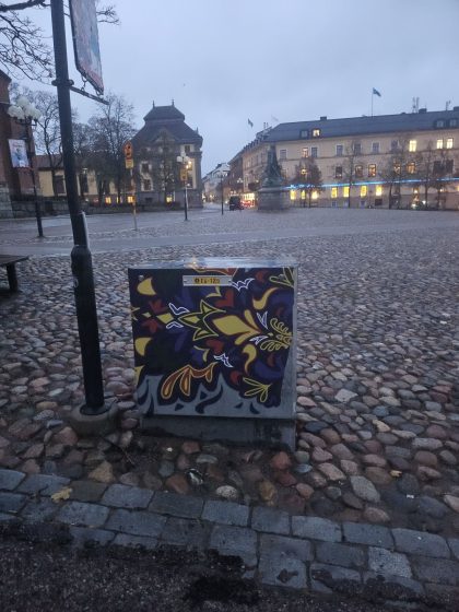 Imorse begav jag mig ner på stan för att fixa fransarna. Det tog sin tid och efteråt träffade jag Björn som överlämnade Lizzla. Jag och Lizzla gick hemåt och på stora Torget upptäckte jag ett till målat elskåp jag inte sett innan. Tycker nog ändå de andra är finare, men eftersom jag blivit på elskåpsjakt passade jag på att ta en morgonfoto även på detta.