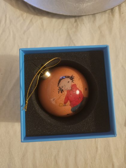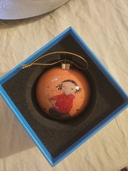 I torsdags hämtade jag hem årets julkula från Unicef. Detta året ät det Pija Lindenbaum Gittan som pryder kulan. Gittanböckerna läste jag om, och om igen för sonen när han var liten. Han älskade Gittan, och sedan de andra böckerna som Siv sover vilse och Lill-Zlatan och morbror raringen. Nu finns det så klart fler böcker av Pija än då, men för mig blev det extra fint att få hem årets julkula med Gittan.