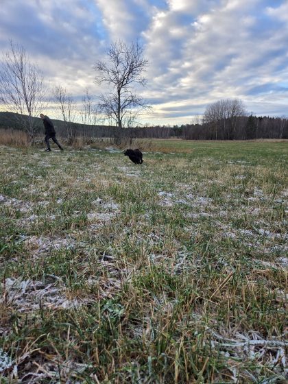 Här på förmiddagen drog vi ut på åkern. Wemby var lite skeptisk först över underlaget, men efter upptäckt hur Lizzla körde race var hon också igång. Full fart framåt och lek. Lizzla levde livet som vanligt på åkern, hon älskar frihetskänsla där ute.