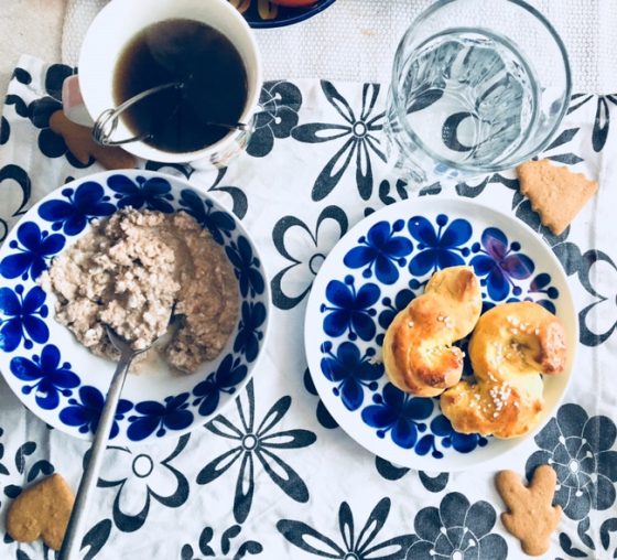 När andra ljuset brinner är snart Lucia här. Hon bjuder oss på kaffe och bud om julen bär.