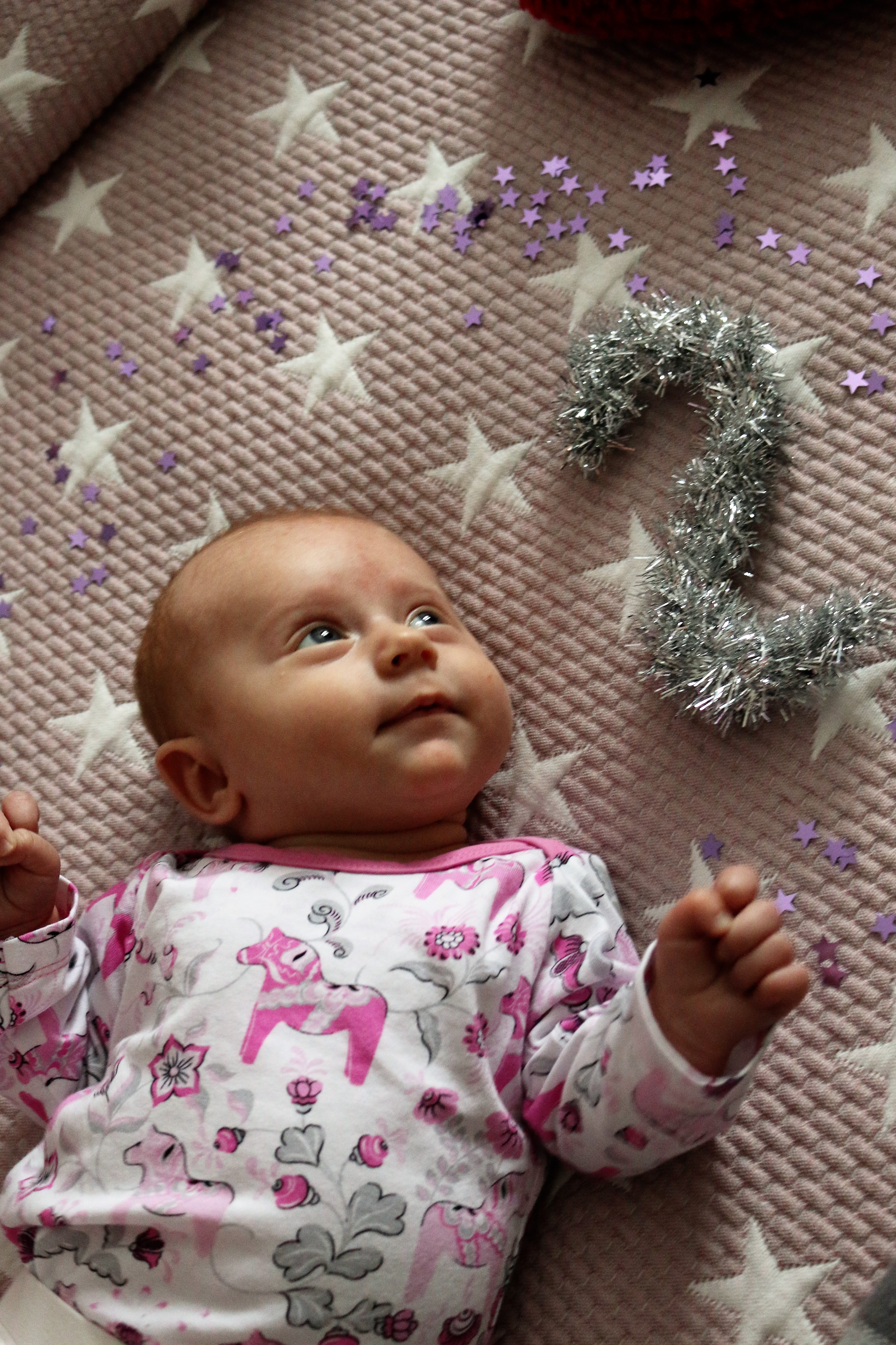 Alice lekte lite med min nyckelring med dalahäst på som jag fått av min bror. Lilla Calle tittade också nyfiken på den och sin storasyster.