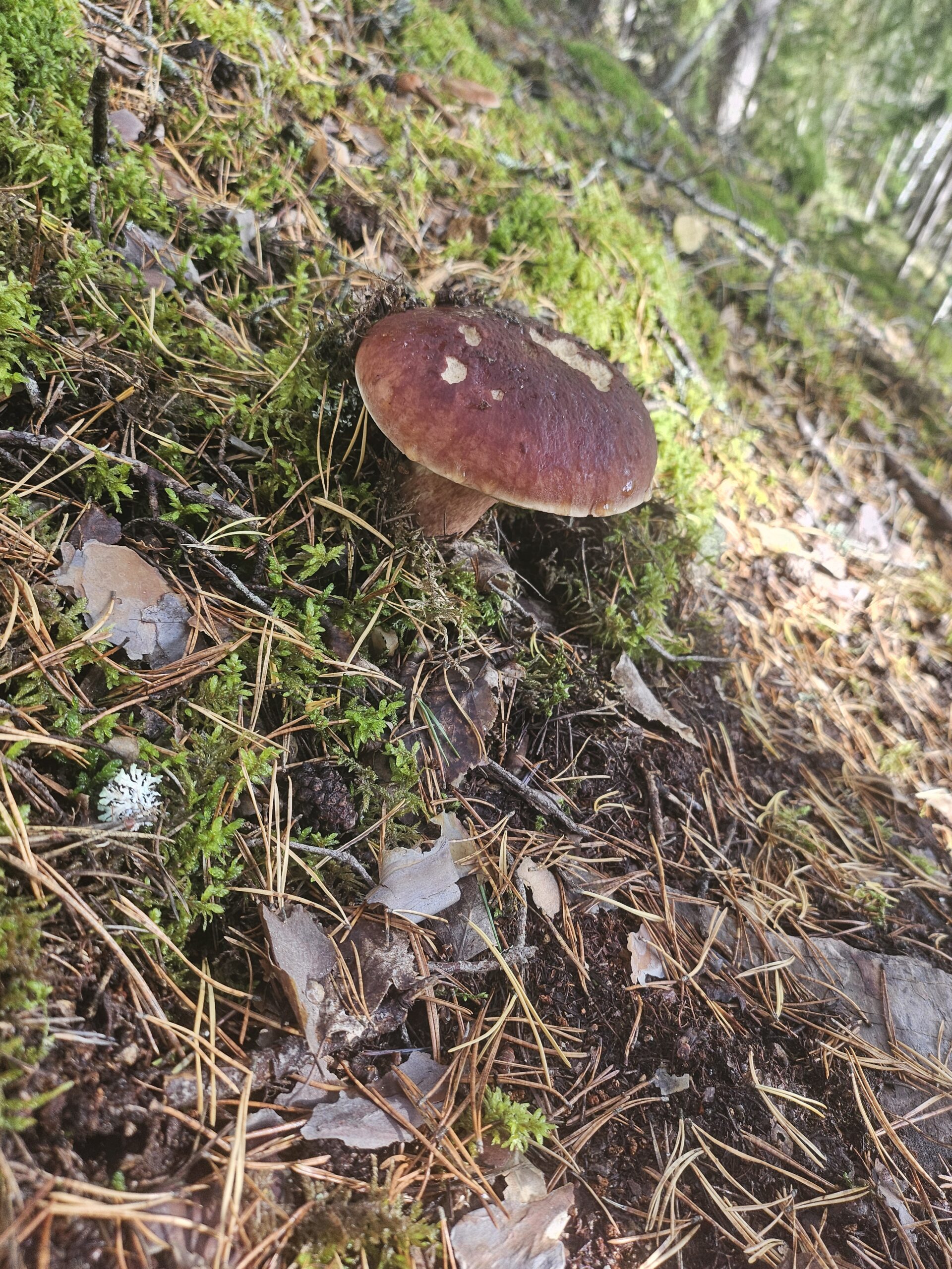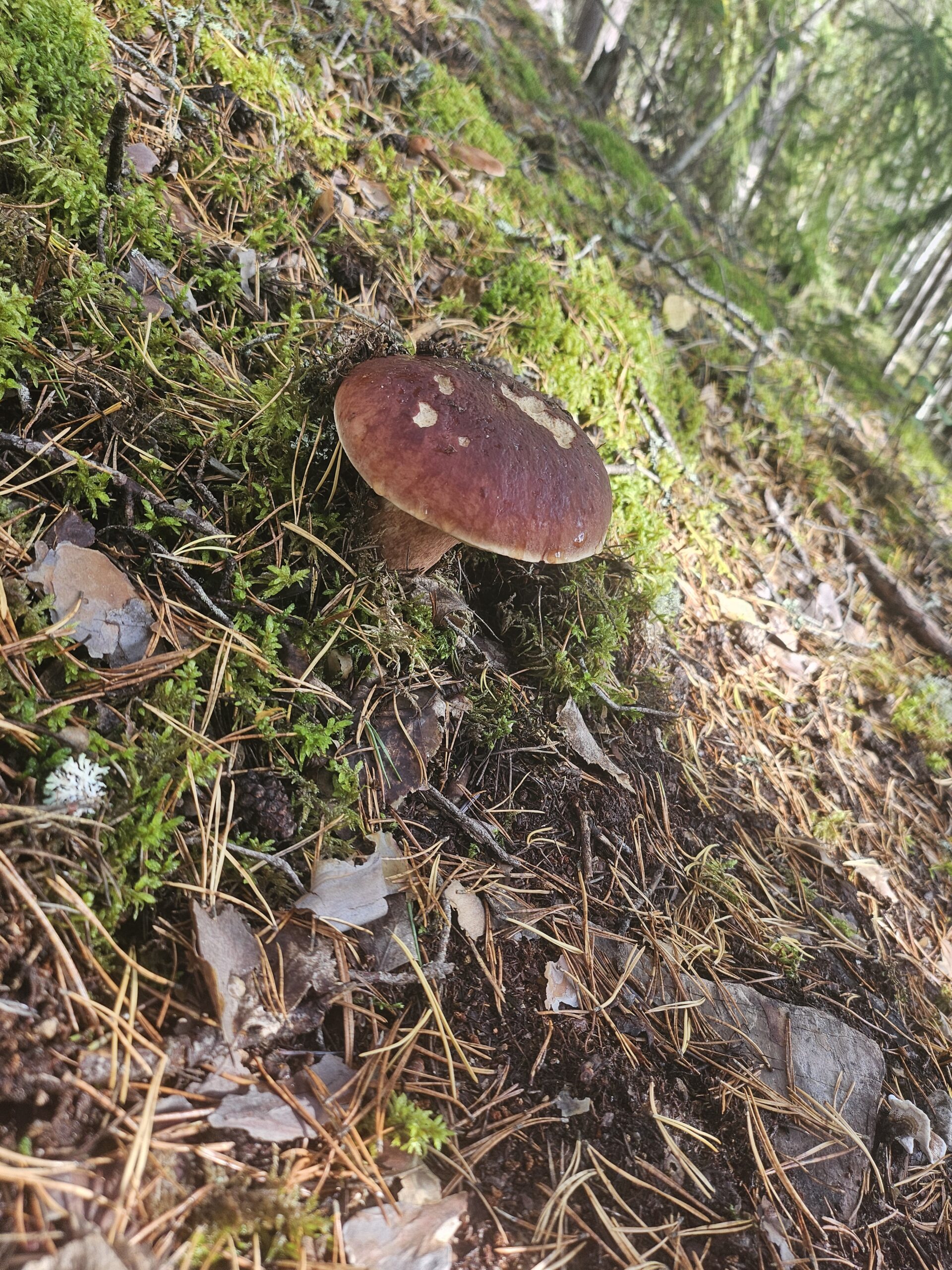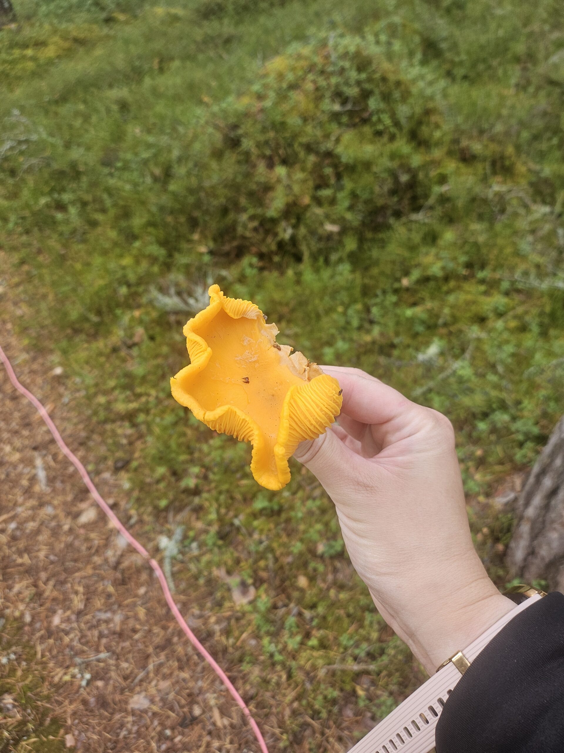 I söndags begav vi oss ut i skogen som jag skrev igår. Björn och Emma letade efter trattkantareller som vi hittade ett helt gäng med. Men vi fann också två gula kantareller. Stora var de också, under promenaden hittade vi även två karljohansvampar. De fick stå kvar men jag tog lite foton på en av dem.