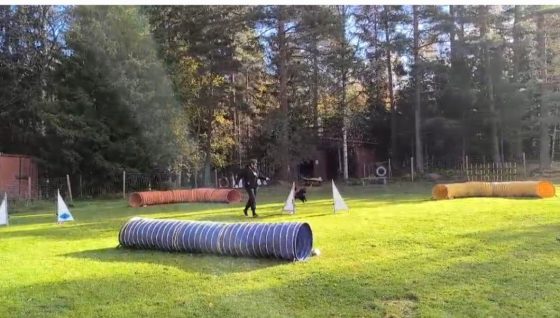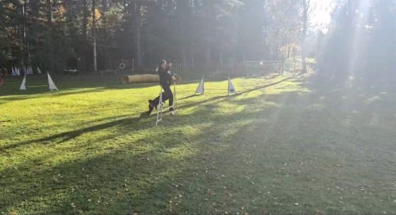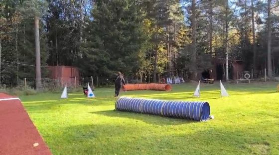 Sedan körde vi på med tunnel och hopp. I det sista har jag fått börja möta in att använda ”fel sida” och arm. Eftersom Lizzla redan var tränad i hopp från skog och marken där jag länge använt mig att kommandot hopp så kan hon saken. Så instruktören sa till mig att börja säga detta tidigare för Lizzla lyssnar och fokuserar på vad hon ska göra då, samt att hon kollar min arm. Nu måste vi bara jobba in fel arm, och det var svårt kan jag säga. Speciellt när jag ska komma ihåg var foten ska vara, säga hopp och ta fel arm för ledandet. Instruktören sa att Lizzla vet, men är omtänksam mot mig för hon väntar in mig, när jag gör fel så jag ska göra rätt. Hur gulligt?! Jag vet ju om det själv att hon kan men det blir att felet hamnar hos mig. Men detta ska jag så klart se till att fixa.